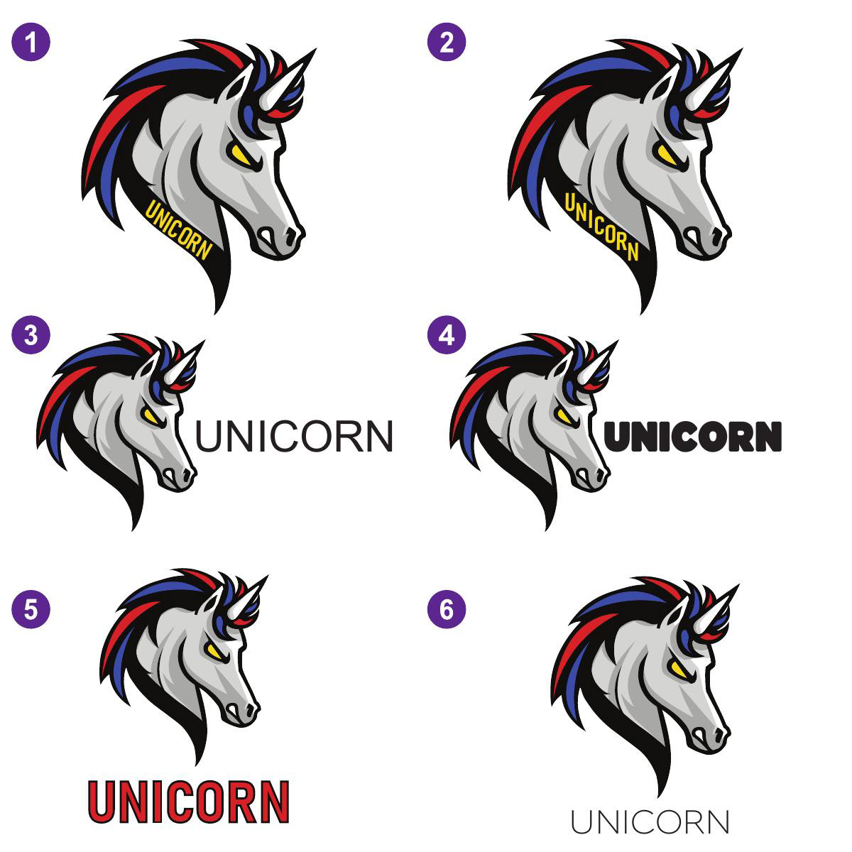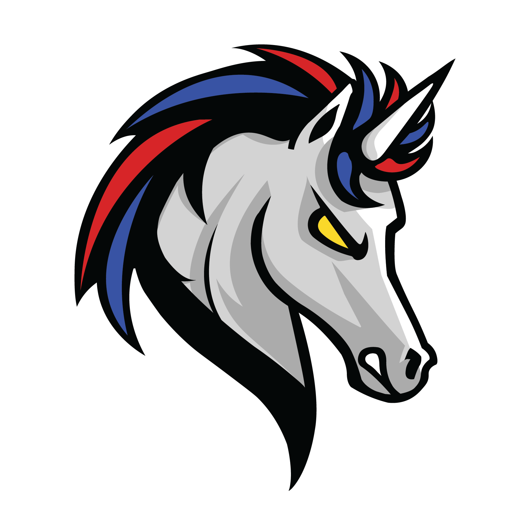 They wanted a sports-like logo with sharp lines and movement. Also requested red and blue colors for the hair.