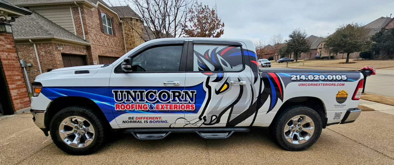 Unicorn Roofing Truck and Wrap